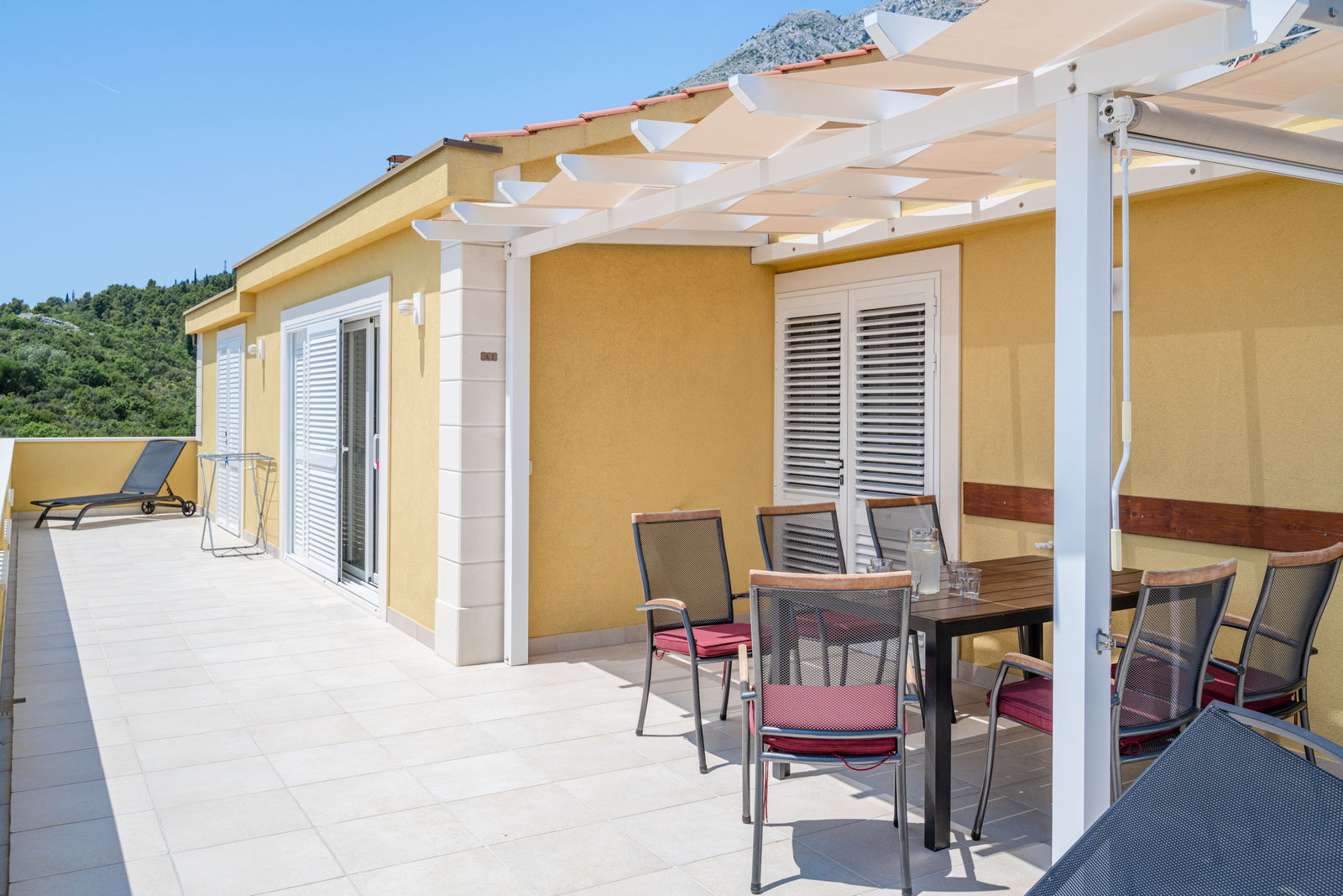 The balcony features a wide panoramic view across Orebic and the channel between Peljesac peninsula and Korcula island. Rest your eyes on the bright blue sea, enjoying a refreshing drink while watching the waves and sailboats go by.